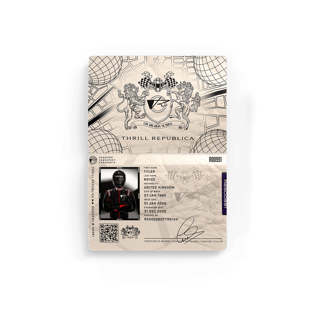 Includes: • Unique THR ID (verifiable) • Official vehicle credentials • Universal Event Check-In (where enabled) • Event stamps (visas) and history tracking • T.H.R. Registry listing • Status Tier (Tourist / Resident) • Early Access to THR Events • Access to partner network